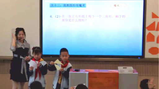 接着第三节课由南京市智康路小学的袁诺老师执教,给大家带来《认识多边形》的展示课。这节课中学生空间观念是在学生具备了长方形、正方形、平行四边形、三角形等图形经验的基础上生长延伸的。教学伊始,袁老师从民族的传统文化--美丽的园林风景切入,带着学生以发现美、欣赏美的眼光去感受生活中的图形,尝试引导学生用数学的眼光观察生活;紧接着,袁老师创设了去“图形王国逛一逛”的生动情景,不仅可以调动学生的生活经验,激发学生的学习热情,又能为课堂教学展开增添趣味性和生动性,亲切的语言和情境瞬间拉近新知和学生的距离;最后,袁老师创设了给图形画像和巧变魔术,这两个有趣的卡通情境,吸引学生主动参与动手画一画、剪一剪、分一分等活动,将学生推上了自主学习的舞台,把学习的主动权交给了学生,让学生在做中体会图形的变化,充分感知图形之间的联系和变化,从而发展空间观念。同时也让学生在积极动手动脑的活动中感受数学学习的价值,体验问题解决的乐趣,培养了学生的创新意识,发挥了学生的主体作用。