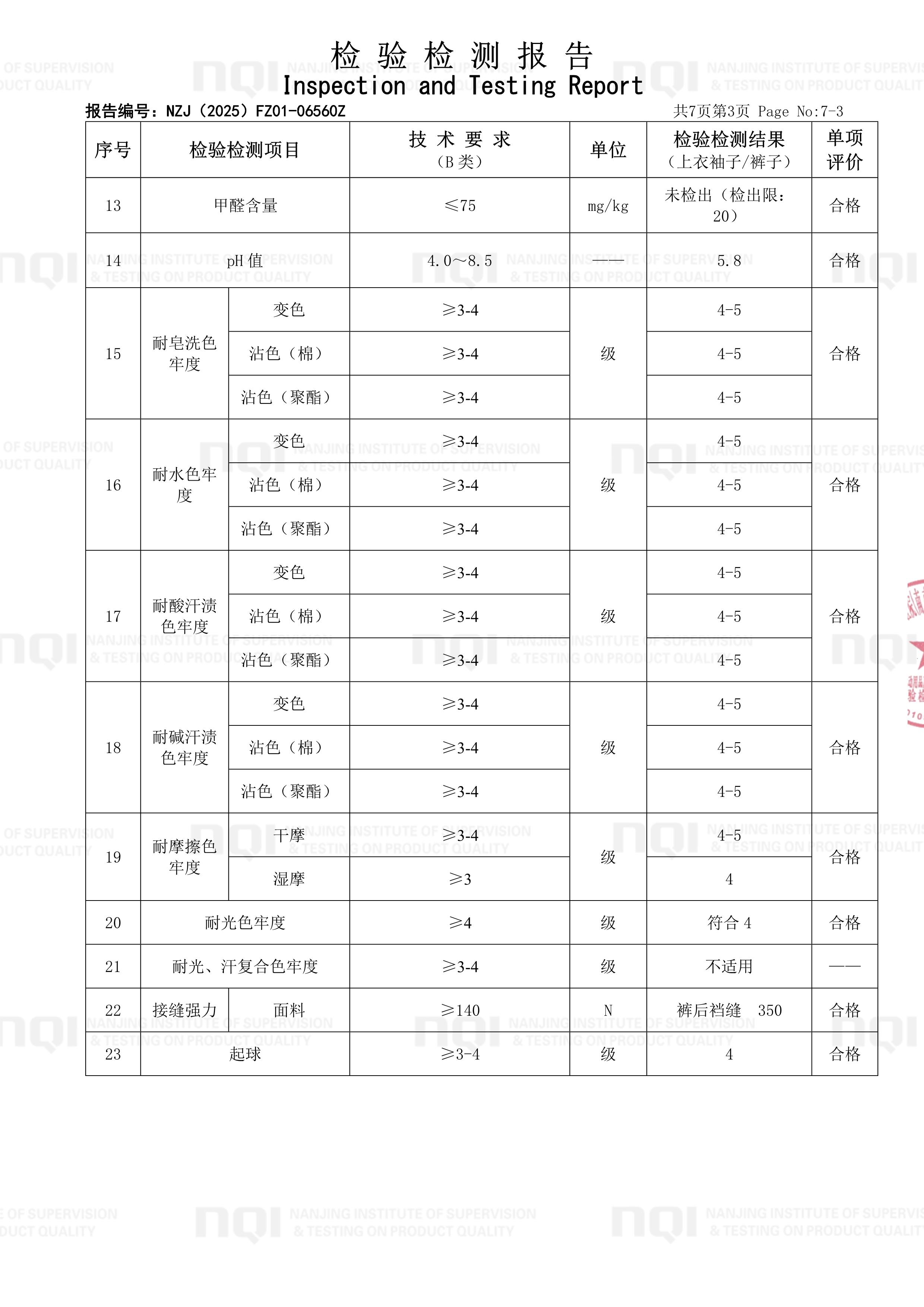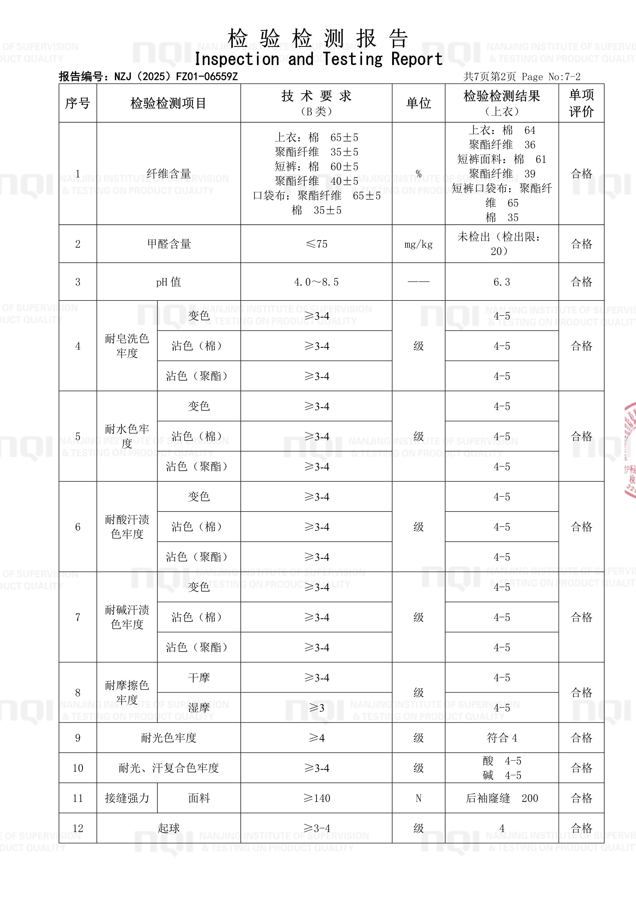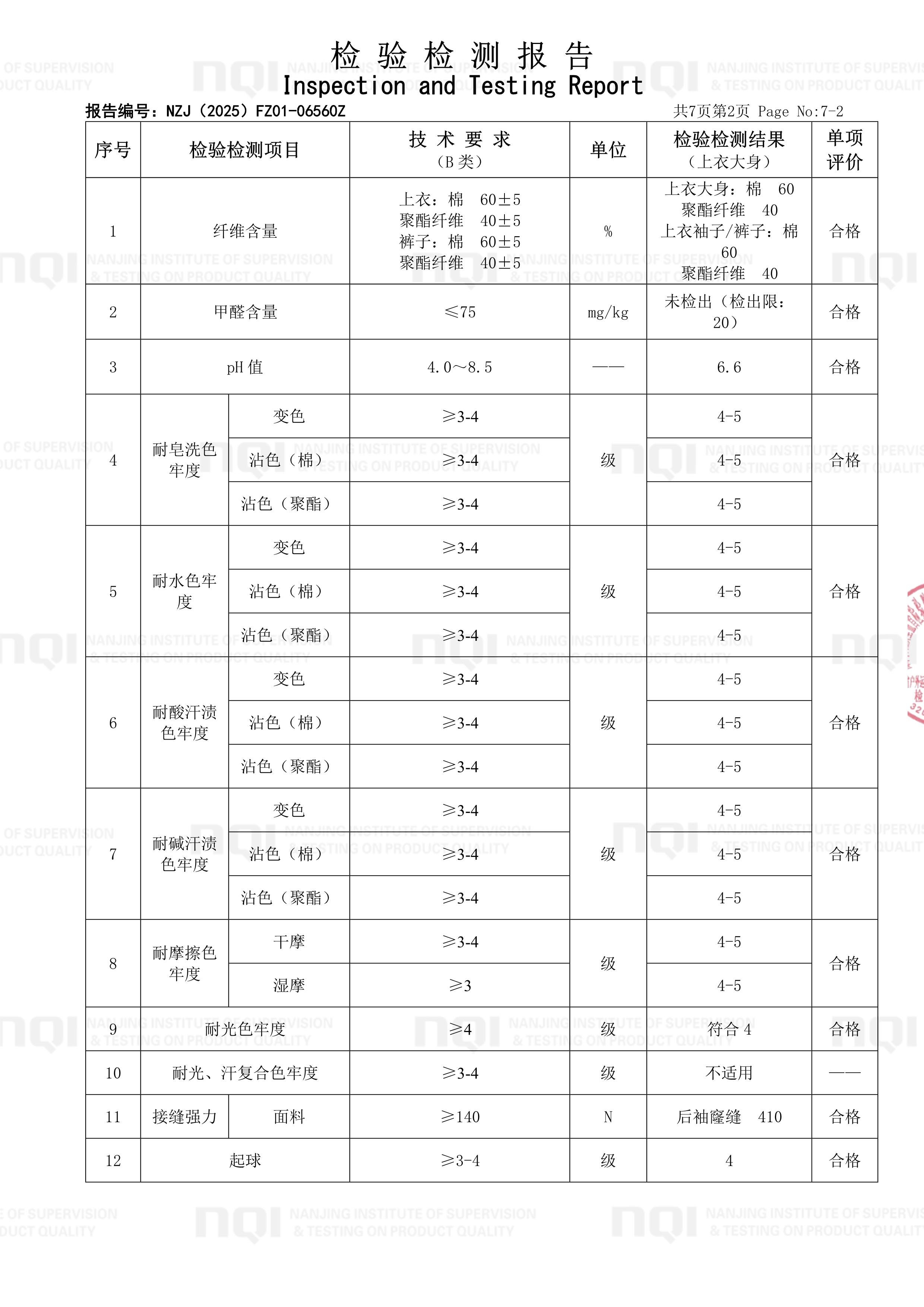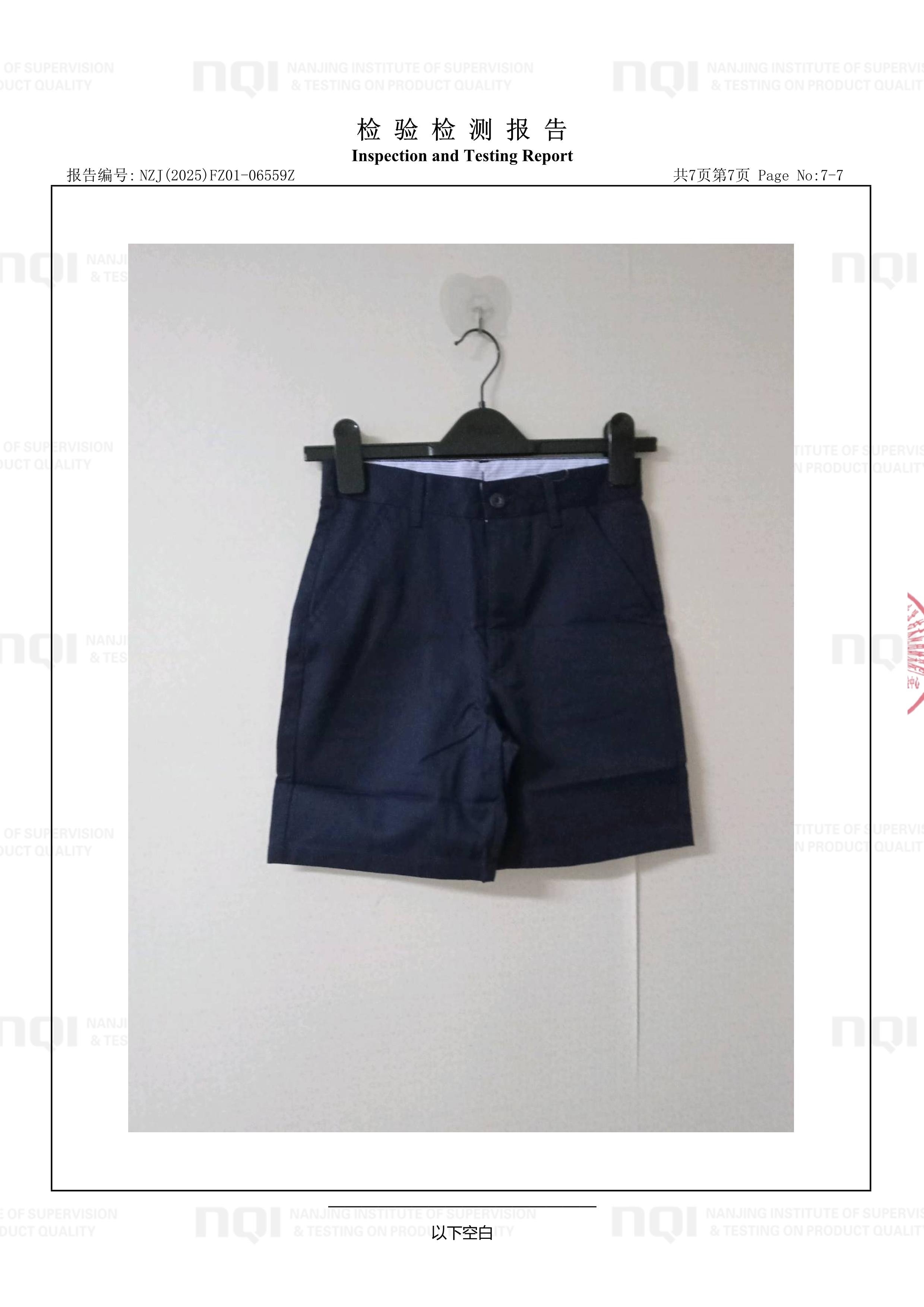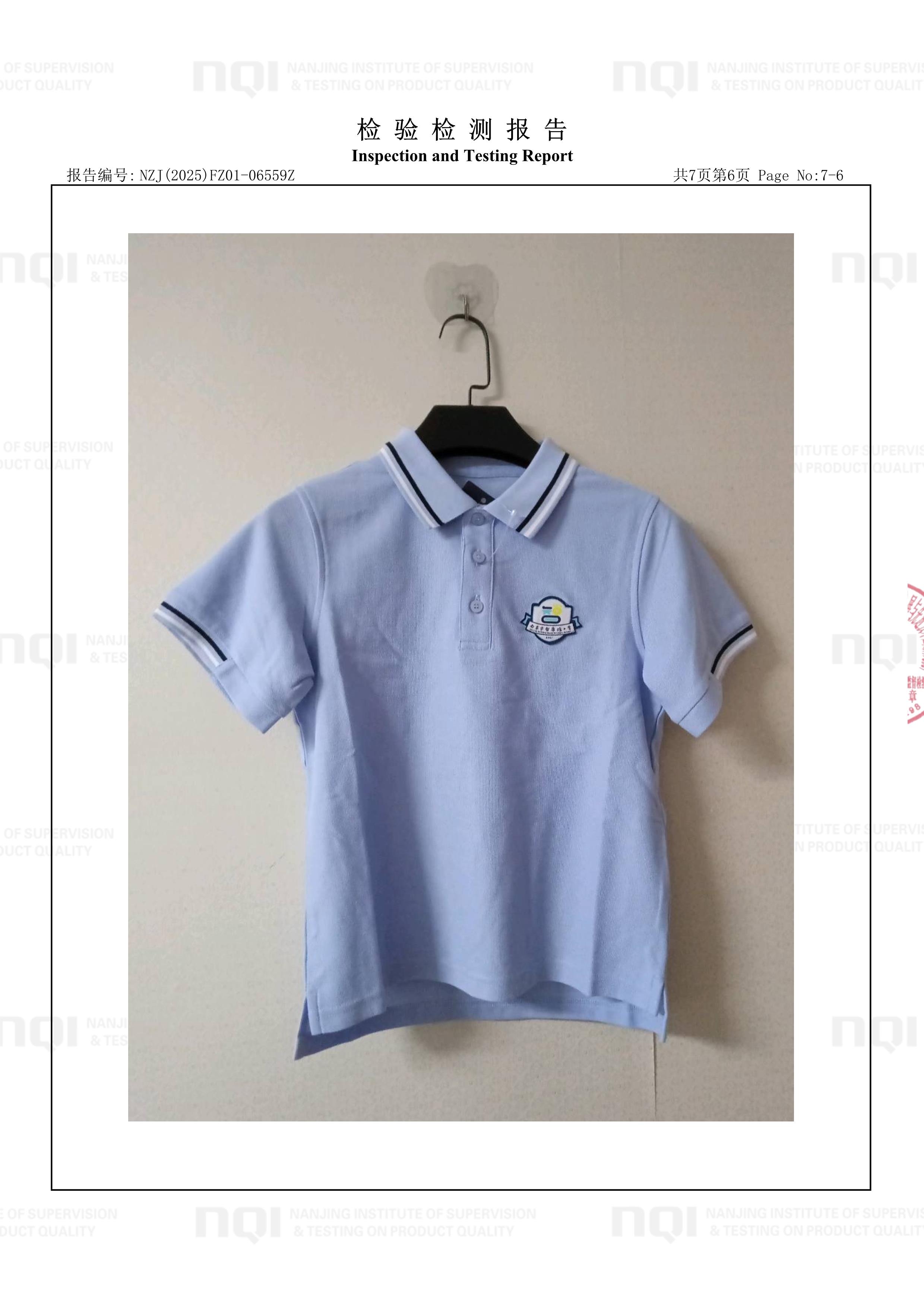 南京市智康路小学2025年9月一年级校服二次检测报告