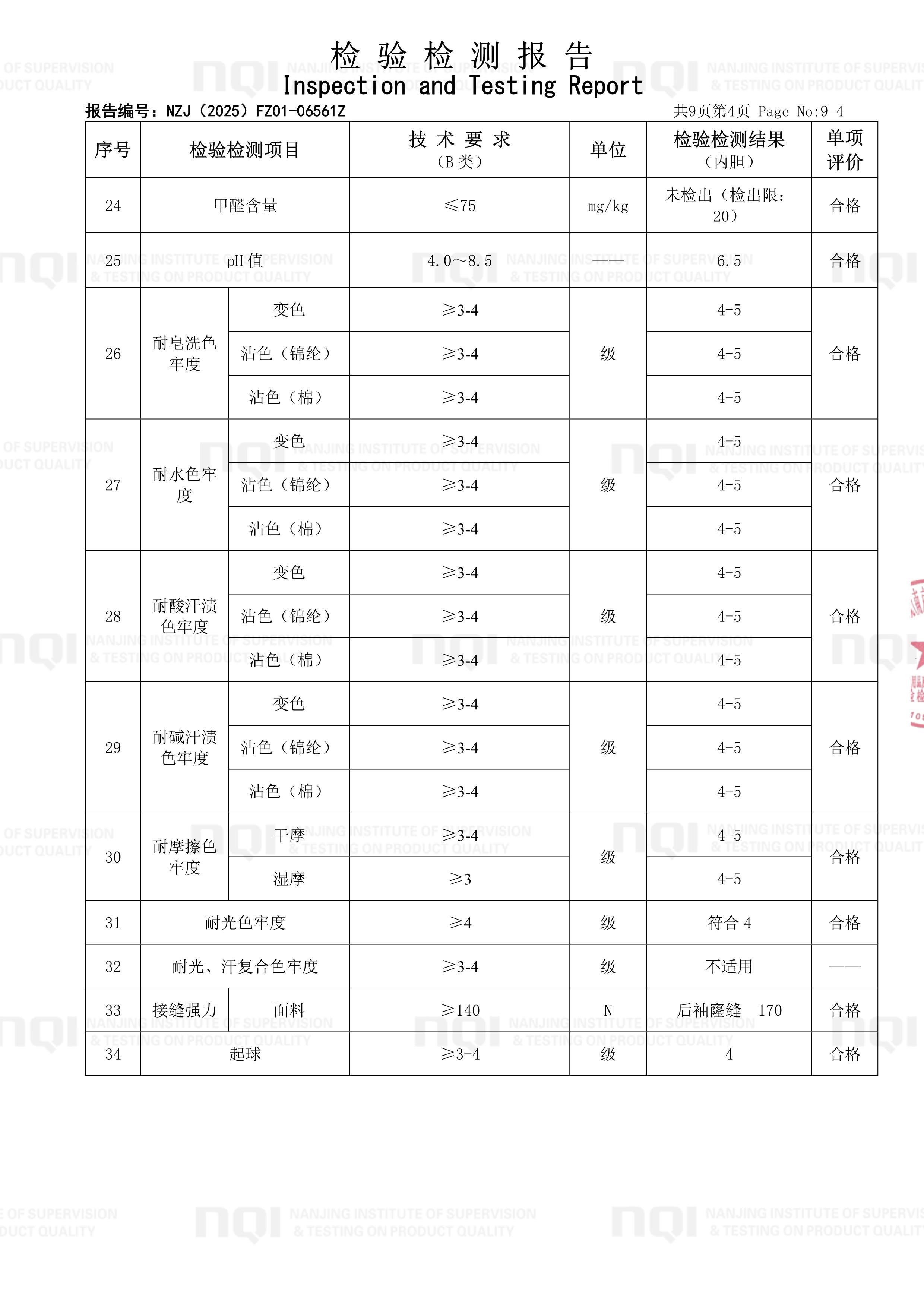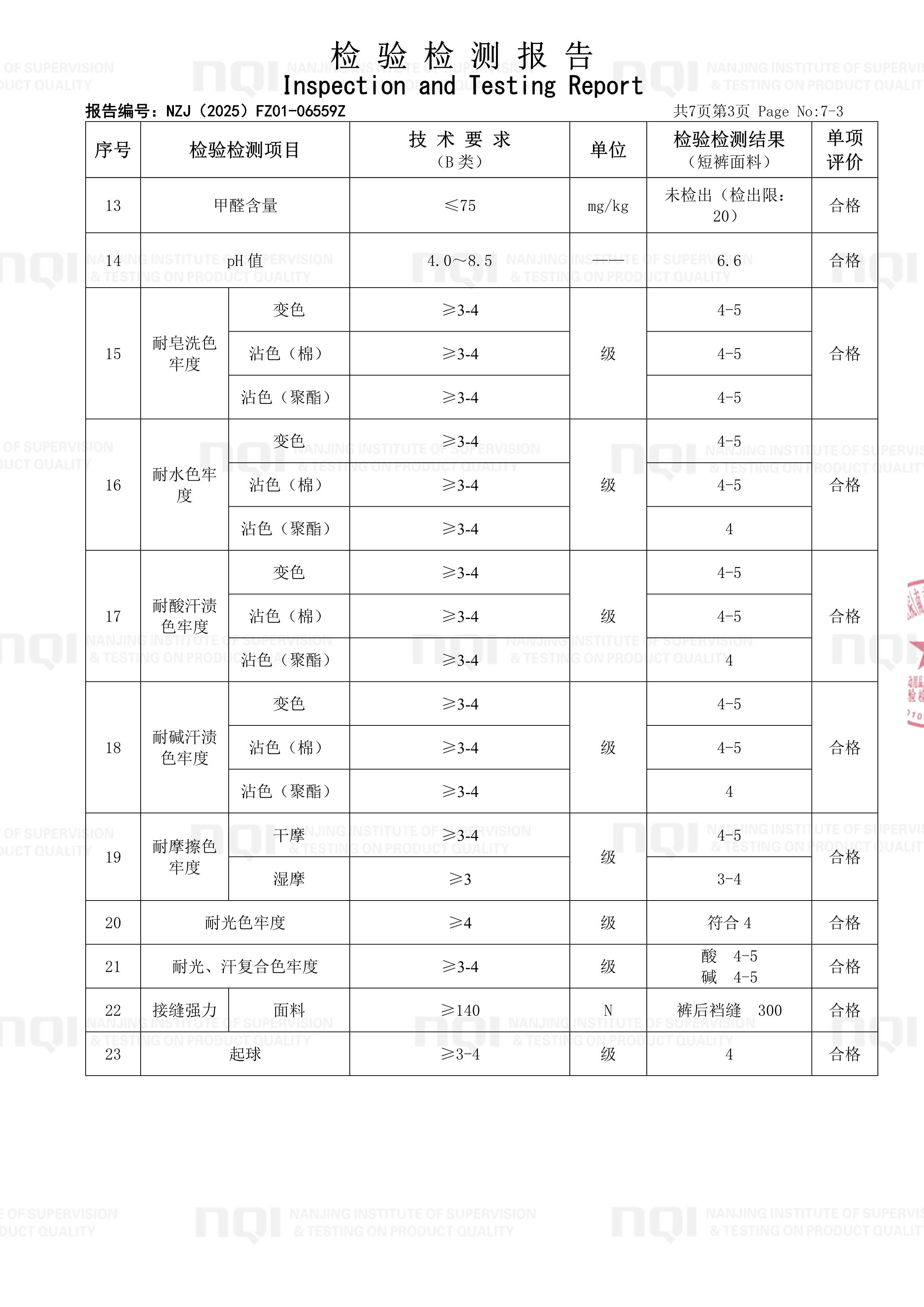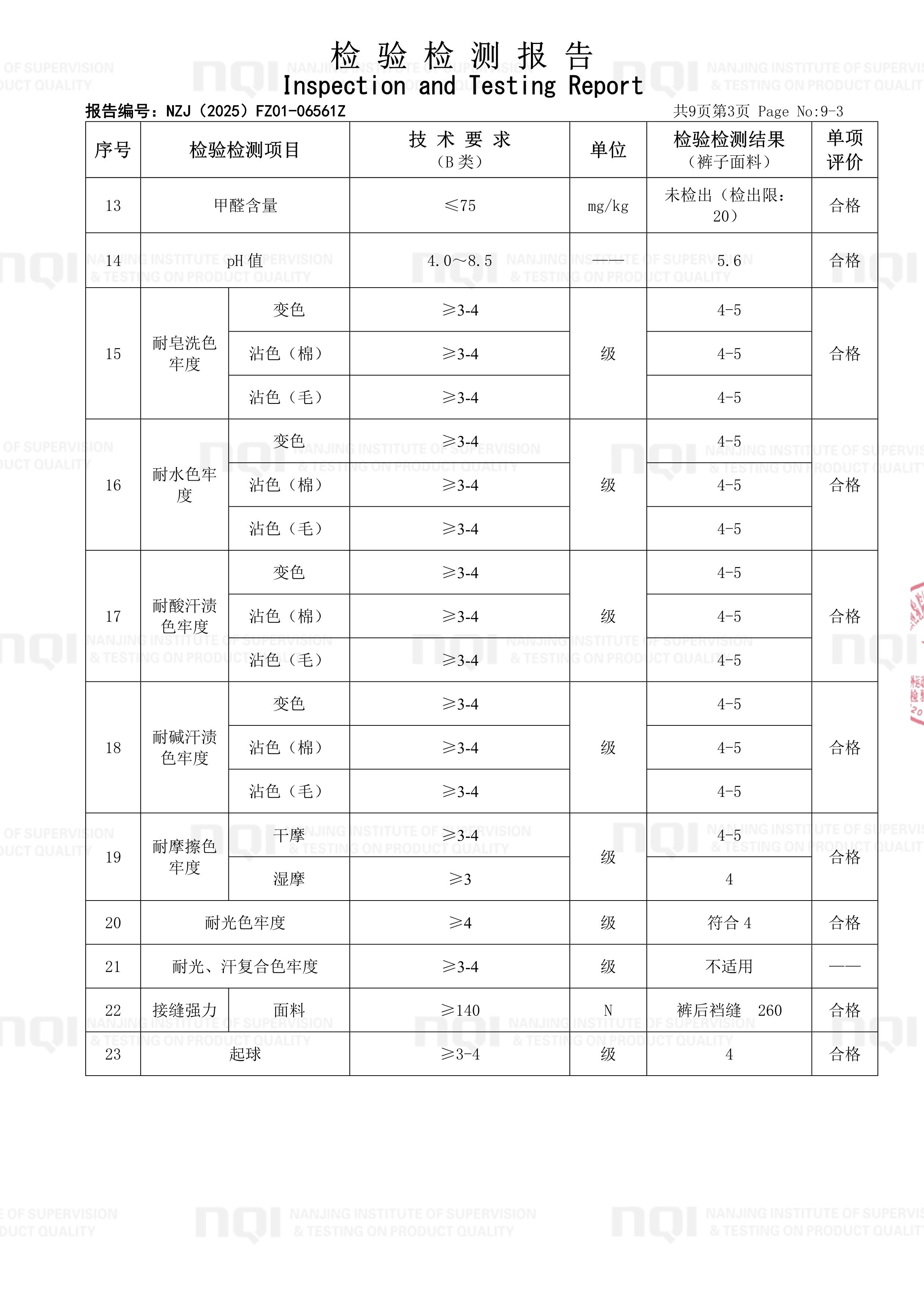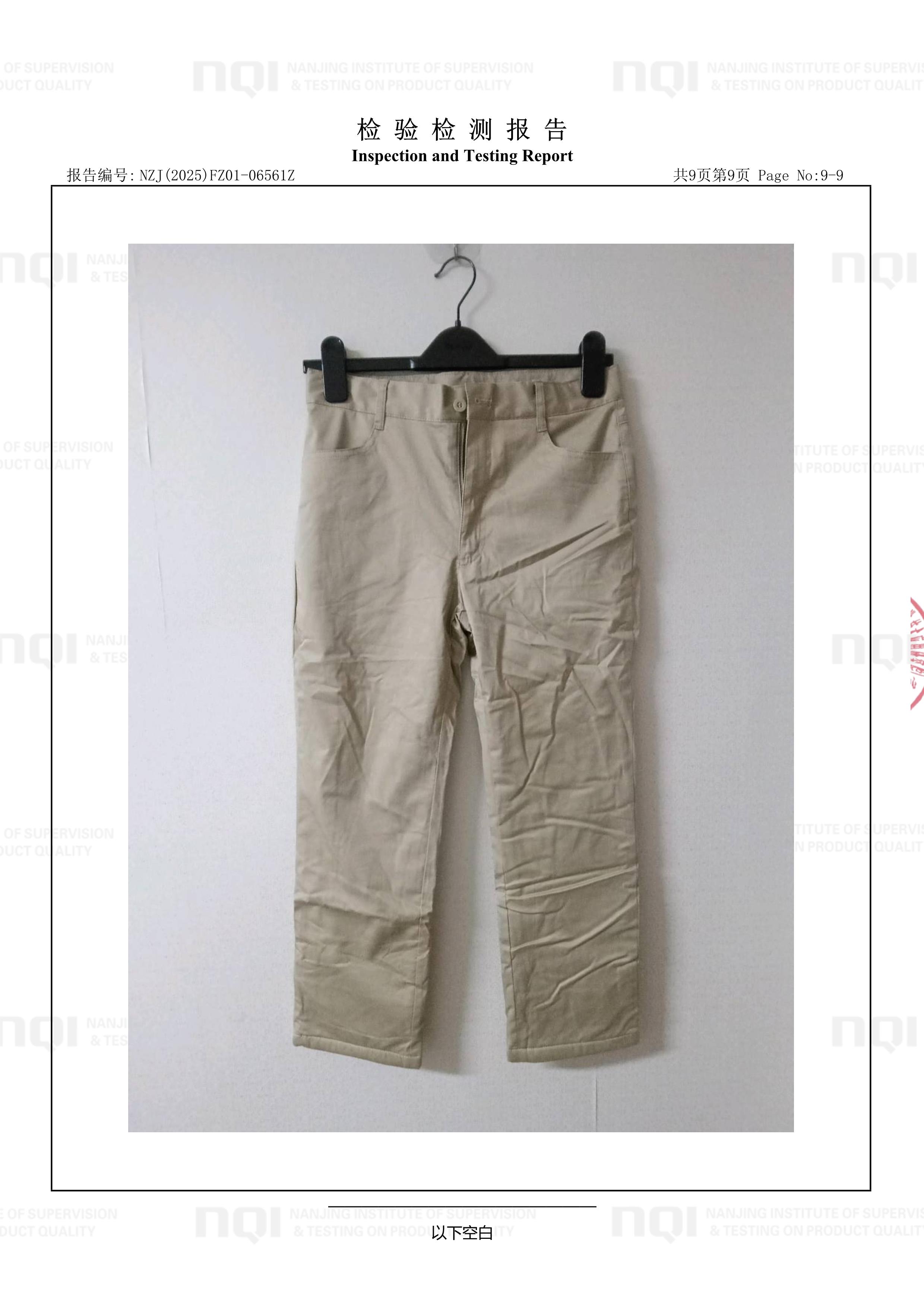 南京市智康路小学2025年9月一年级校服二次检测报告